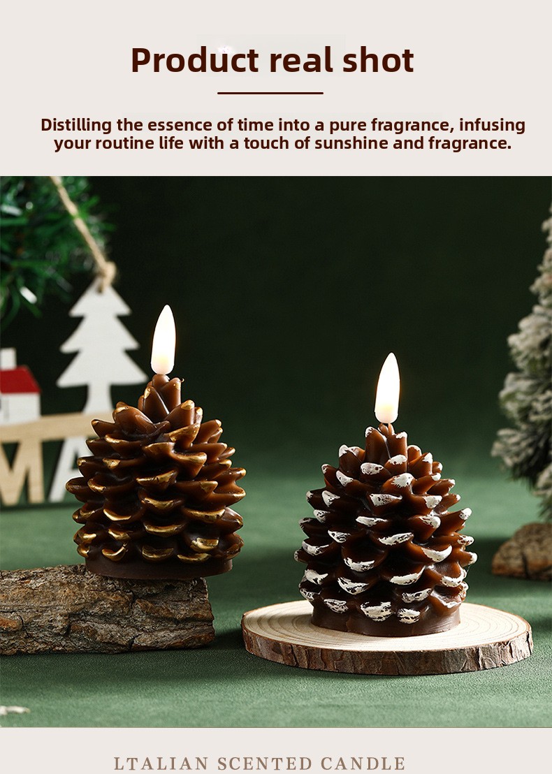 Decorative LED Candles: Features realistic pinecone design with hand-painted details for a festive Christmas ambiance.